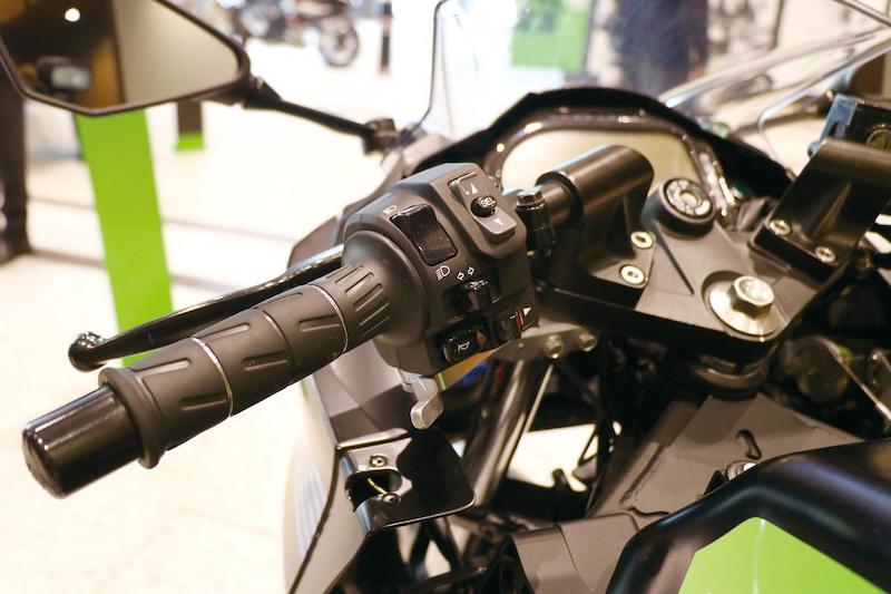- Konsol butang kawalan sebelah kiri nampak seperti model lama Ninja 1000 dan ada tambahan tuil perak yang direka untuk sistem brek regeneratif (regenerative braking).
