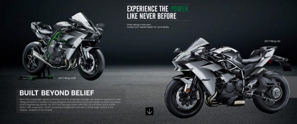 Menggunakan enjin 4-lejang berkuasa supercharged, yang juga tidak asing diperkenalkan pengeluar lain, Ninja H2 berjaya menampilkan diri dengan kuasa serba menakjubkan. Hasilnya ialah tiga varian superbike yang bukan saja sah atas jalan, tetapi juga layak ditunggang dalam trek. Sementara itu, varian H2 Carbon yang dihasilkan dalam kuantiti terhad tahun lalu, kini sekali lagi kembali dalam kategori sama untuk 2018.