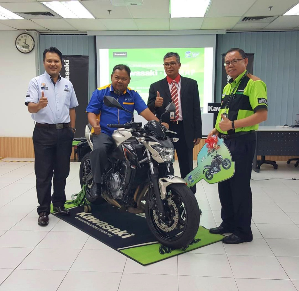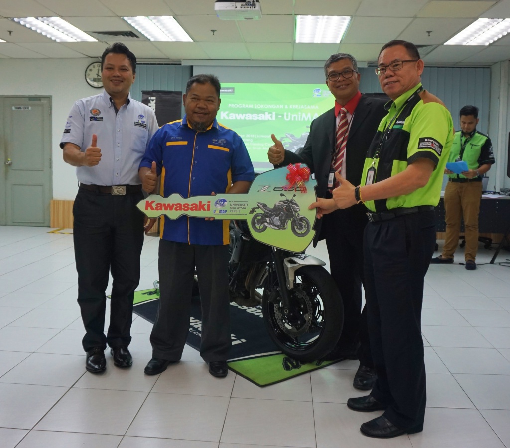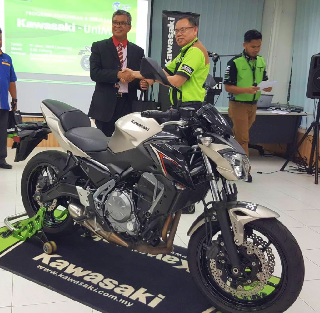 SELEPAS Yamaha, kini giliran Kawasaki Motors Malaysia (KMM) pula menyumbangkan satu unit motosikal naked, Kawasaki Z650 kepada Universiti Malaysia Perlis (UniMAP) yang bakal digunakan sebagai alat bantu mengajar, terutama untuk bahagian Unit Penyelidikan Teknologi Sukan Permotoran UniMAP (MoTECH).
