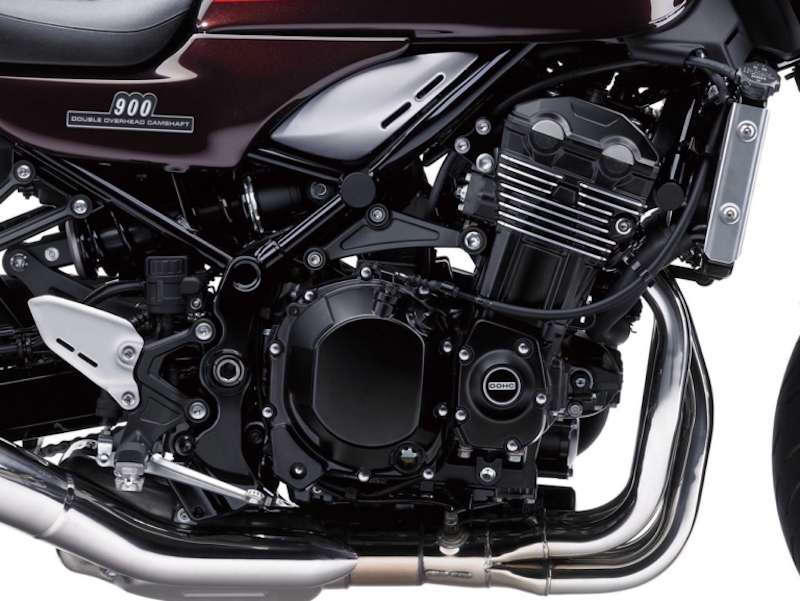Fairing sisi pula ditambah lencana vintaj 900 Double Overhead Camshaft, termasuk pelana bertekstur mirip Z900RS (2018) dan bar bonceng.