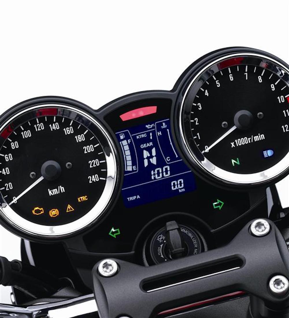 Kawasaki Z900RS (2023) menggunakan panel meter analog-digital yang menggantikan panel meter TFT warna penuh pada Z900 supaya sesuai tema neo-retro.