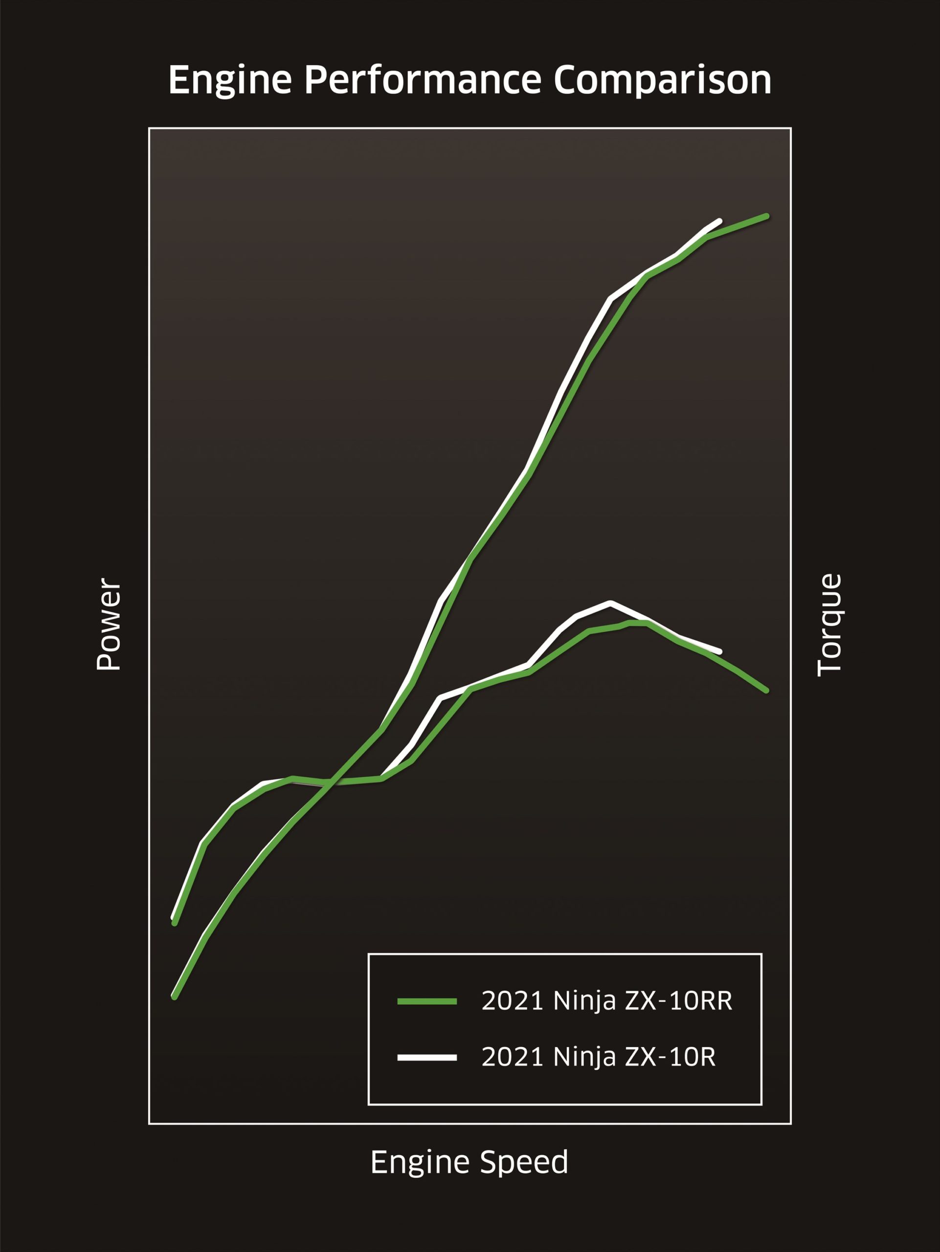 Ninja ZX-10R (2021) pula dijana enjin sama, 4-silinder sebaris 998cc berkuasa 200hp @ 13,200rpm dan tork 114Nm @ 11,400rpm. Kawasaki turut merombak baharu sistem penyejuk, sistem ekzos, injap terotel elektronik dan nisbah gear.
