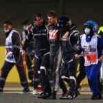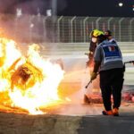 Jentera lumba Haas-Ferrari terbelah dua akibat kemalangan yang menyebabkan api marak menyala menyelubungi pelumbanya, Romain Grosjean. Detik pelumba Switzerland itu keluar memijak pengadang jalan nyata melegakan semua walaupun kondisi sebenarnya ketika itu belum diketahui.