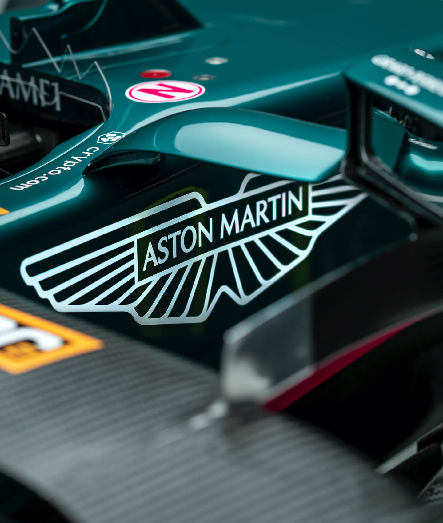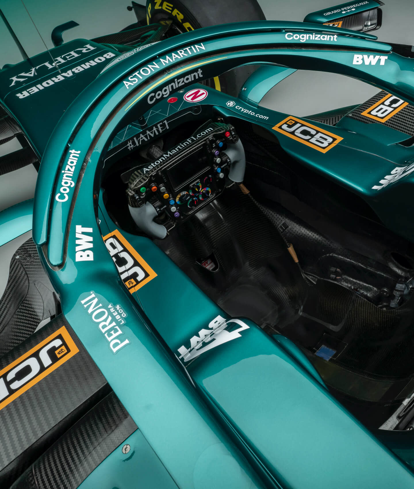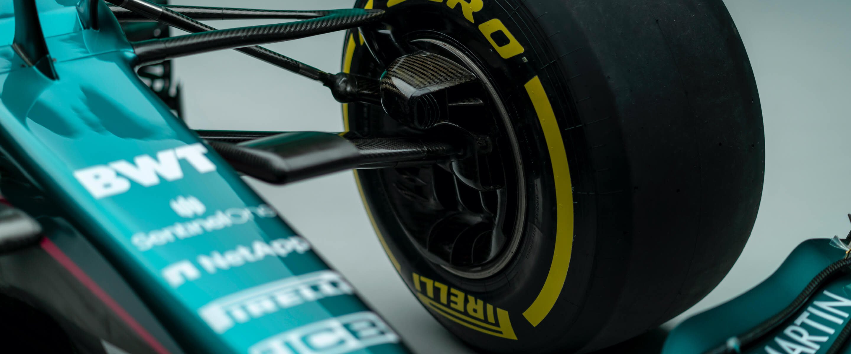 Pemilihan warna hijau kebiruan sebagai warna utama adalah tribut kepada jentera lumba Aston Martin era 50-60-an, DBR1 sebagai model ikonik dekad tersebut yang memenangi Le Mans, dan jentera F1 terakhir Aston Martin, DBR4 sebelum pasukan itu menyepikan diri dan muncul semula tahun ini. Garisan aksen merah sepanjang sisi badan ialah warna syarikat penaja, BWT.