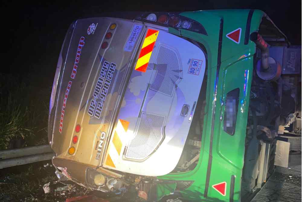 - Lori kontena terbalik selepas gagal ambil selekoh jejambat (flyover) dalam kelajuan tinggi.