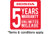 Semua kenderan baharu daripada Honda Malaysia, didatangkan dengan waranti 5 tahun, tanpa had perbatuan dan hingga 6 kali caj buruh percuma.