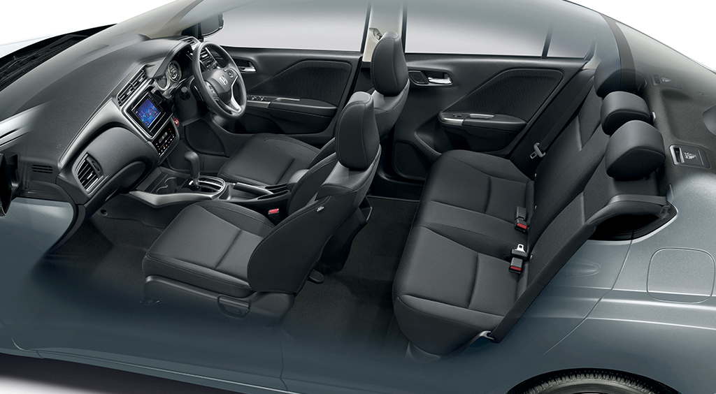 Setiap keluarga kecil dan sederhana besar pasti berpuas hati dengan ruang kabin dan kargo seluas 536 liter ditawarkan City. Ditambah pula penyaman udara untuk penumpang belakang, perjalanan seisi keluarga semestinya lebih selesa dan nyaman.