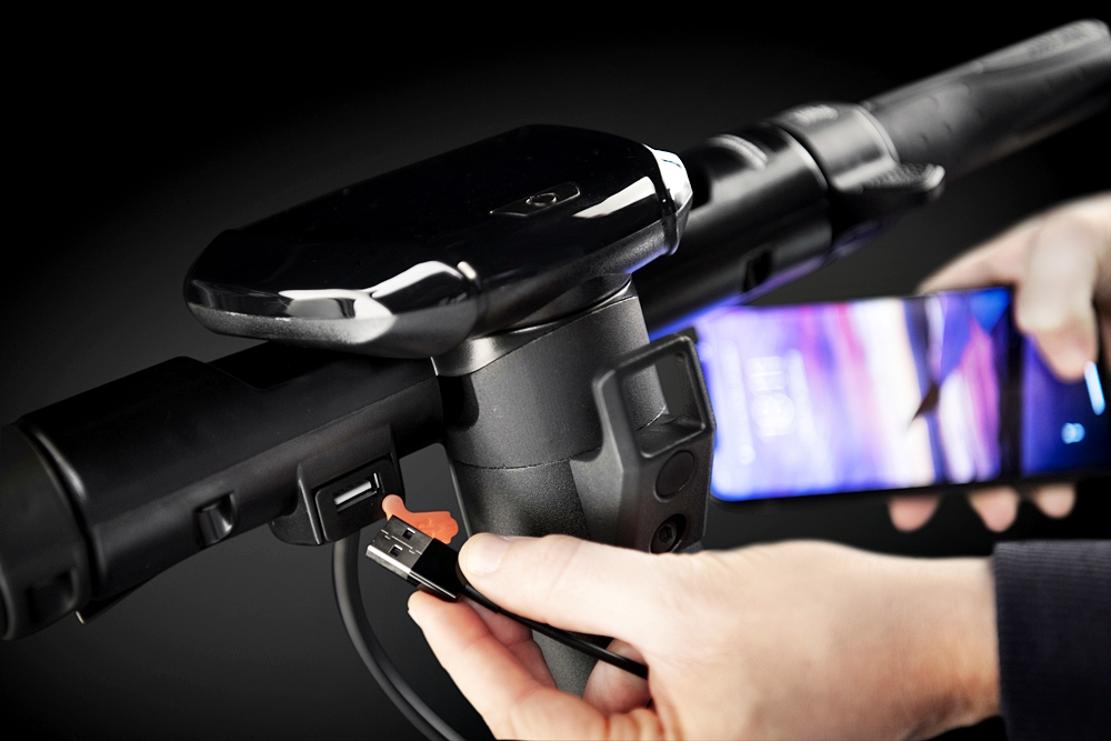- Model ini perlu dihidupkan menggunakan teknologi NFC. Pengguna perlu bawa sekeping kad kecil atau token pada paparan hendal untuk menghidupkan skuter.