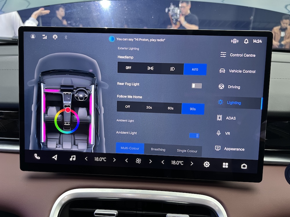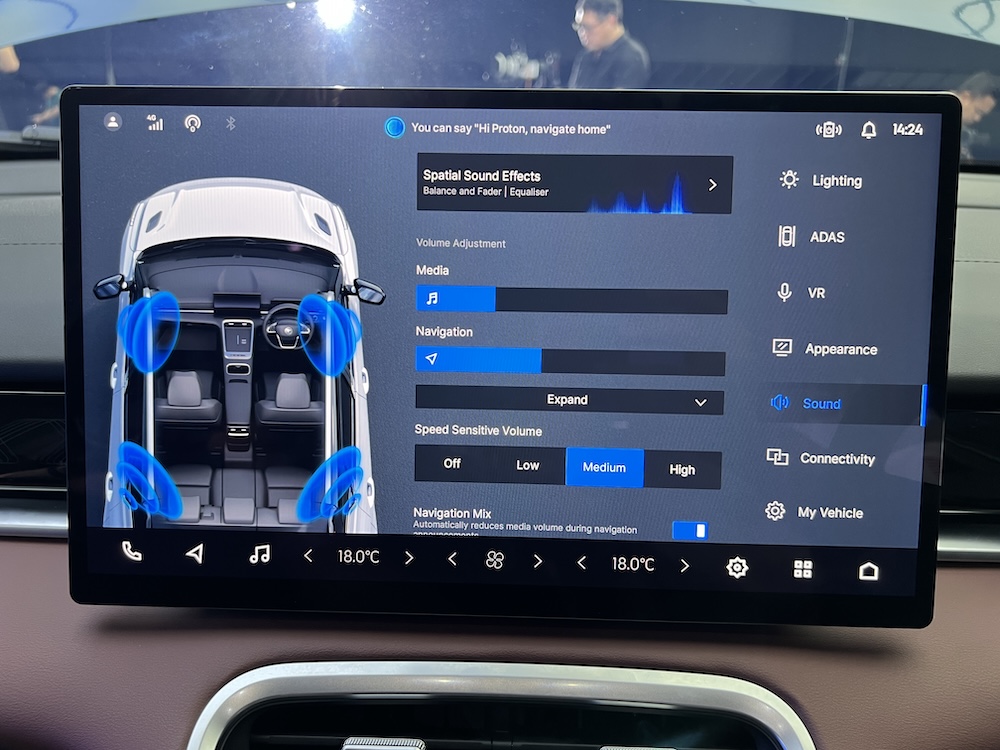 Unit infotainmen bersaiz 14.6 inci (paling besar dalam segmennya), resolusi penuh HD 1920×1080 dengan paparan skrin lebar nisbah 16:9, dijana cip pemproses empat teras dengan sistem operasi Android 10.