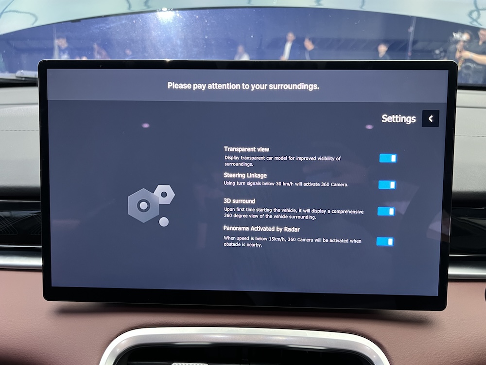 Ciri keselamatan lain diberikan ialah kamera definisi tinggi (HD) 360º dengan pandangan lut sinar 180º, sistem Bantuan Parkir Automatik (APA) untuk parkir selari dan melintang, serta enam beg udara SRS.