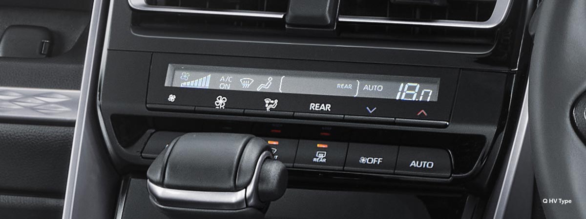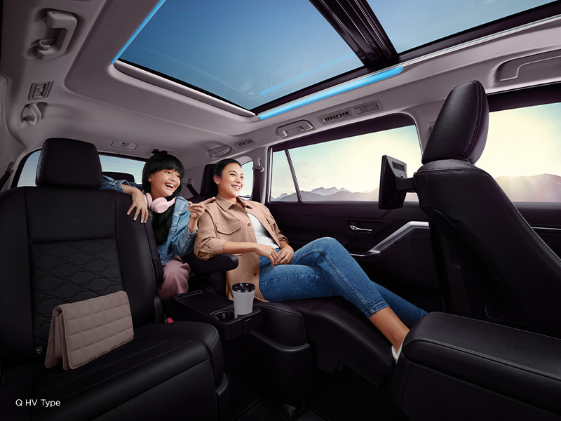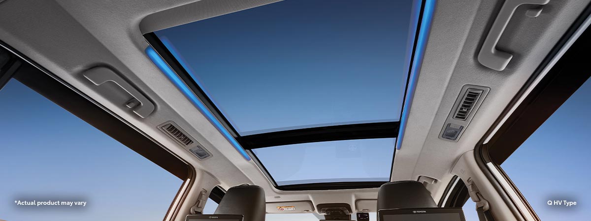 - Varian paling premium, Q Hybrid mendapat tambahan rim 18 inci, pintu but elektrik dengan arahan suara, kerusi Kapten dengan Ottoman, dua unit infotainment 10 inci pada kerusi belakang (juga ada pada varian Gasoline), kamera perakam digital (DVR/dashcam), pengecas wayarles, dan teknologi bantuan pemandu Toyota Safety Sense (TSS) 3.0.