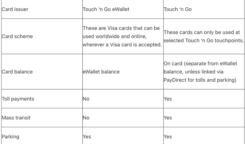 Merujuk laman web TnG Digital, syarikat itu memang secara jelas memaparkan perbezaan fungsi Kad VISA dan Kad TnG seperti berikut: