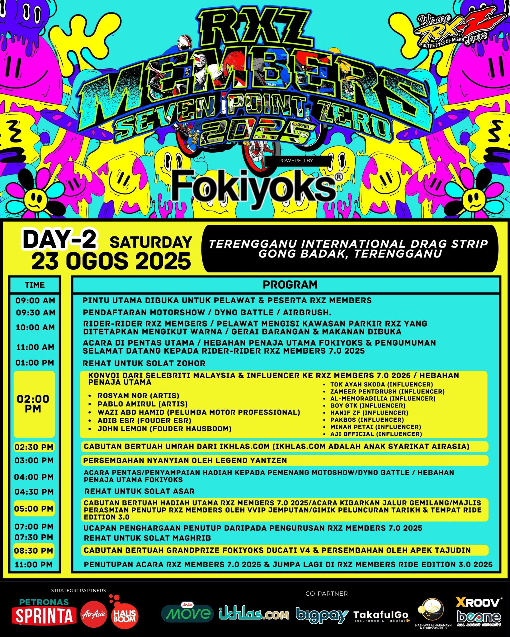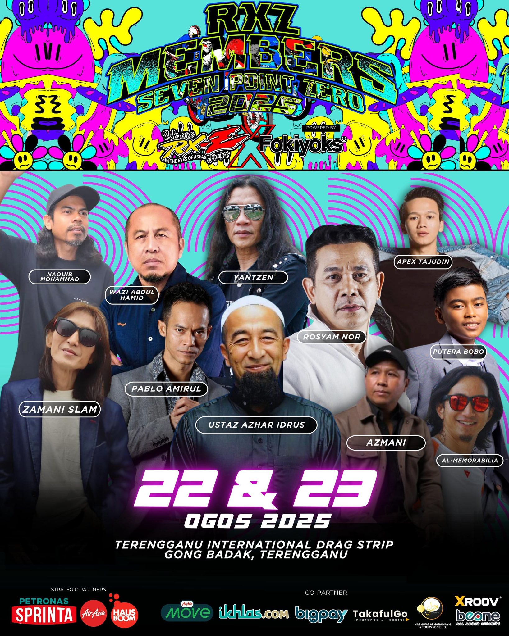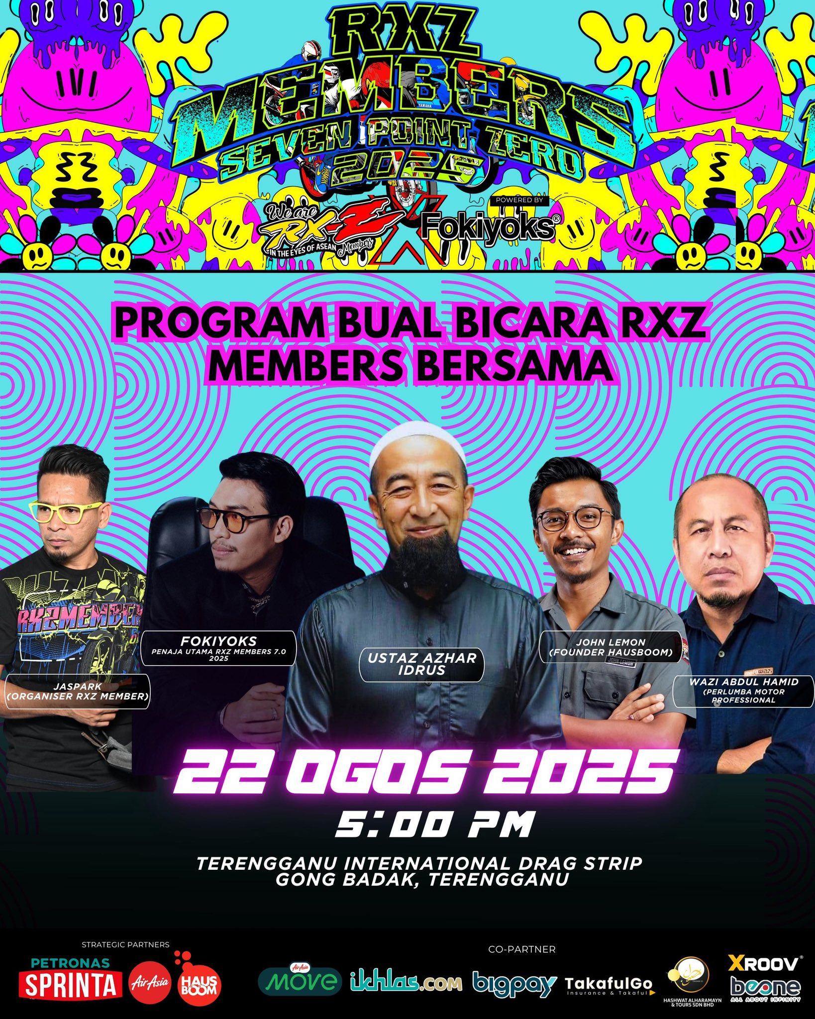 Program RXZ Members 7.0 dijadual berlangsung Sabtu ini di Litar Permotoran Gong Badak, Terengganu. Dalam pada itu, Perdana Menteri turut mengajak semua peserta mengibarkan Jalur Gemilang sebagai lambang kebanggaan dan kecintaan terhadap tanah air.