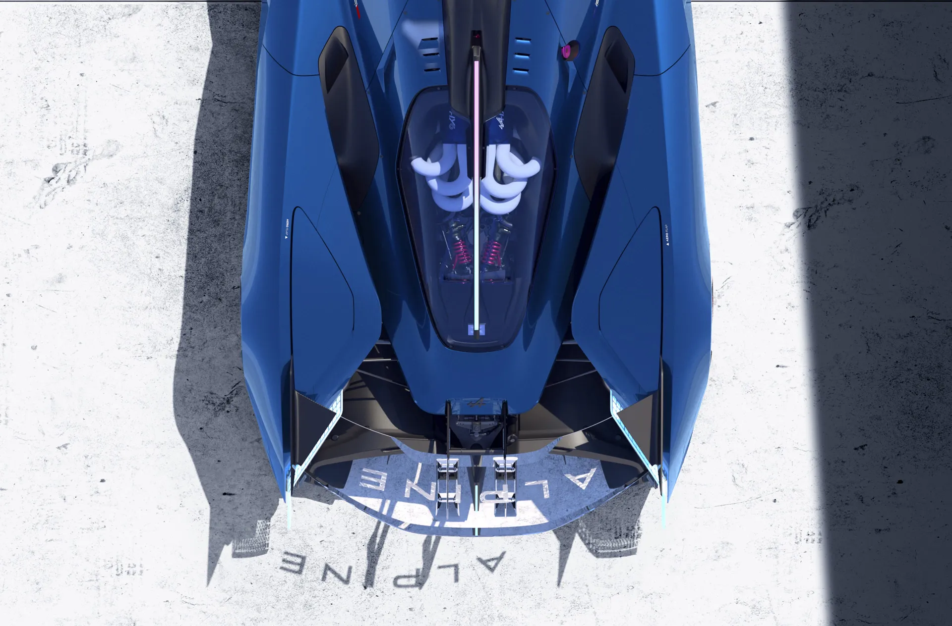 - Segitiga depan kokpit dikekalkan yang menjadi antara ciri jentera Alpine dan mengingatkan kepada pergunungan (Alpine).