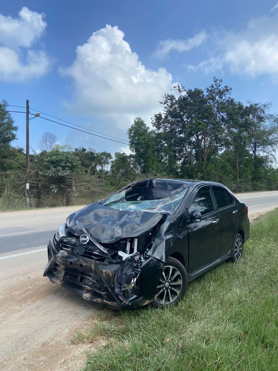 “Alhamdulillah, saya dan tiga penumpang lain selamat tetapi kereta memang rosak termasuk lampu dan bumper hadapan pecah selain tayar dan rim juga rosak, katanya di Facebook pada Khamis.”