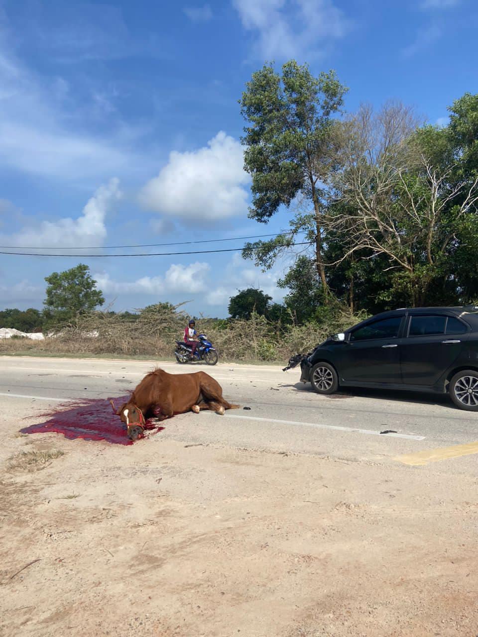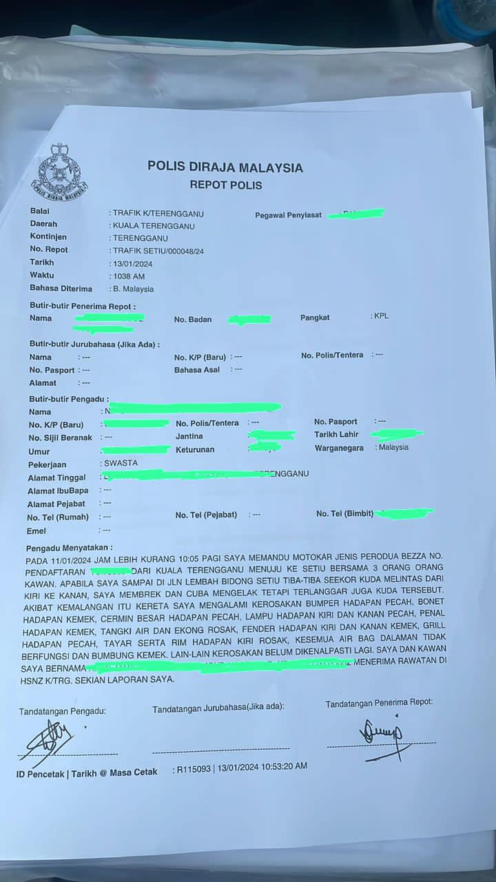 Perkongsian gambar tersebut kini tular dengan meraih 1,200 tanda suka dan netizen meminta supaya pemilik kuda tersebut bertanggungjawab untuk tampil menghubungi mangsa.