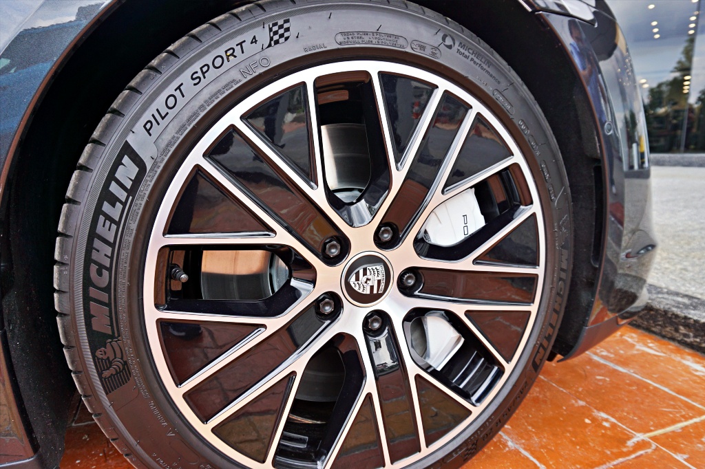 - Taycan 4S memiliki rim 19 inci, manakala sistem brek jenis cakera besi tuang 360mm dan kaliper 6-piston di depan, dan cakera 358mm dan kaliper 4-piston di belakang.