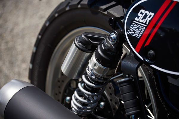 - Suspensi masih sama, tetapi tetapan berbeza. Bersesuaian dengan tugas sebagai jentera Scrambler, suspensi travel hadapan bersaiz 4.7 inci, manakala belakang kekal 2.8 inci.