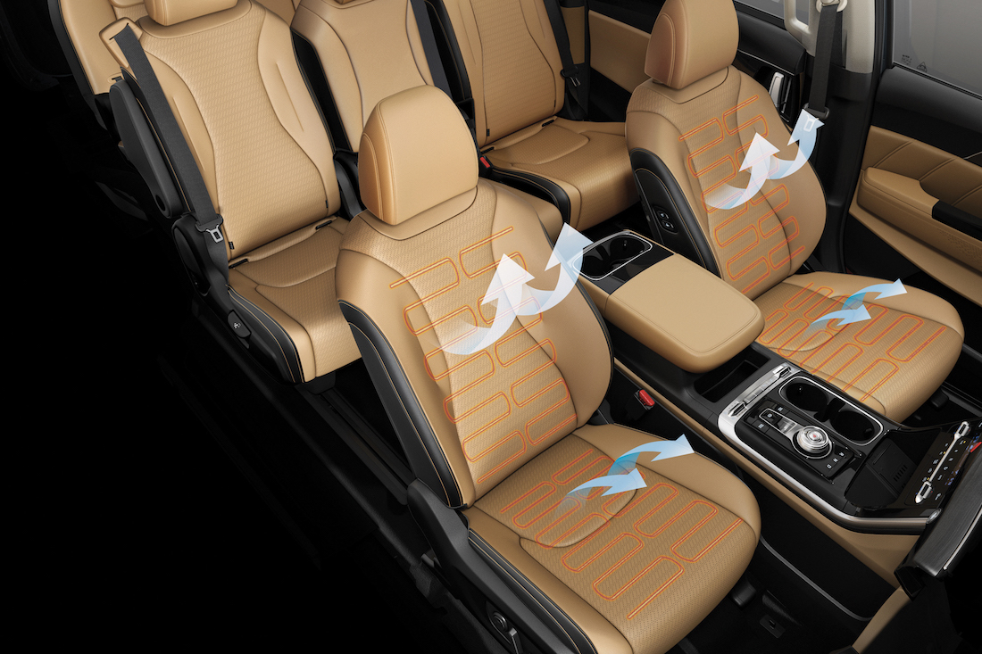 - Varian 7-seater High dilengkapkan kerusi kulit, dan kerusi Premium Relaxion dengan konfigurasi ruang tengah untuk keselesaan dan kemewahan penumpang baris kedua.