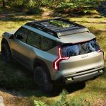 EV9 ADVNTR Concept diambil dari EV9 2025 dan dipasangkan bampar baharu untuk kegunaan lebih lasak. Lampu tiga baris dan lampu bumbung merupakan aksesori asas untuk pacuan empat roda meredah hutan.