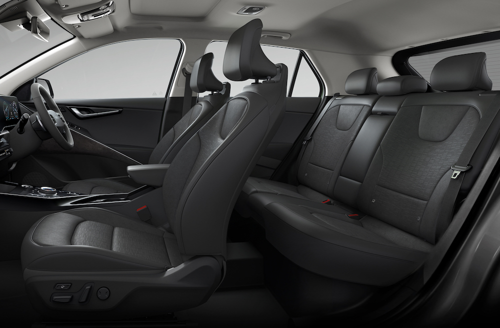 Crossover EV turut menawarkan 64 pilihan lampu ambien, pengecas telefon pintar wayarles, port USB-C di tepi kerusi depan dan upholsteri hitam.