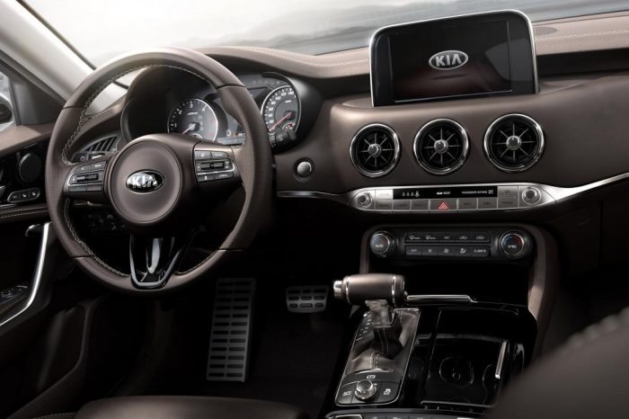 Menjengah ruang dalaman, rekaan papan pemuka Kia Stinger saling tidak tumpah seperti desain kabin-Y model Mercedes. Papan pemuka cembung sebagai pembahagi konsol tengah diaturkan ventilator penyaman udara dengan skrin paparan infotainment, manakala penampilan rim pula mengingatkan kita kepada gaya rim BMW.