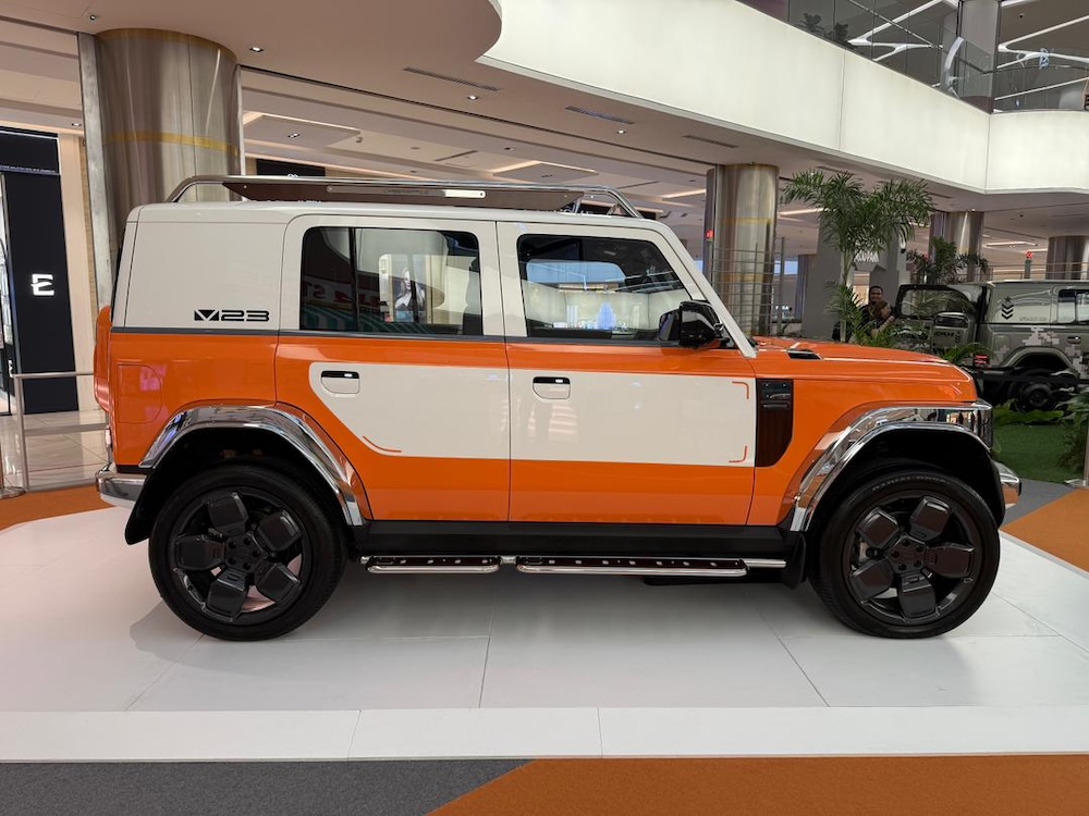 Rekabentuk diberikan mengekalkan siluet berkotak dan lasak V23, serta menggabungkan elemen klasik kenderaan off-road ikonik yang sinonim dengan ketahanan dan kebebasan pengembaraan.