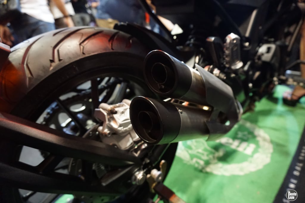 - Pemasangan dua ekzos menawarkan bunyi prestasi yang mengujakan.