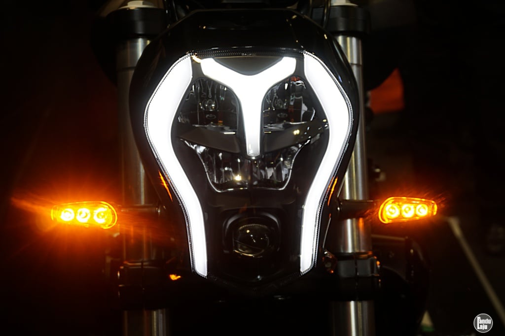 - Imej depan ala tengkorak bersama lampu depan LED dipadankan dengan rekaan bar hendal lebar.