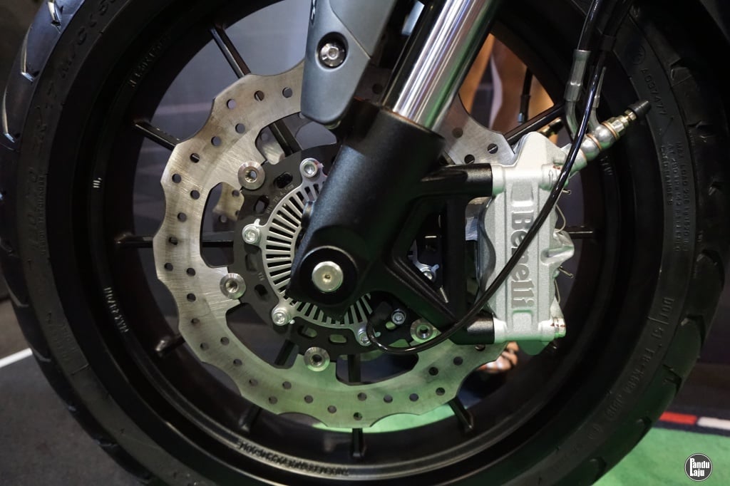 - Daya cengkaman diserahkan kepada tayar bersaiz 160/60-17 (depan) dan 120/70-17 (belakang).