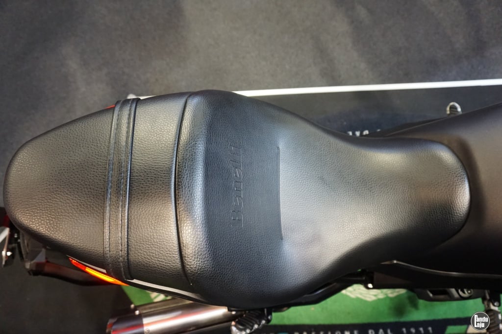 - Fork terbalik (USD) di depan dan monoshock boleh laras di belakang dipasangkan dengan dual brek cakera brembo 280mm semi apung (depan) dan cakera 240mm (belakang) dengan Sistem Brek Anti-Kunci (ABS).