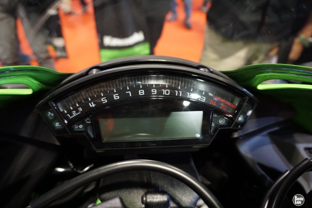- Dari segi gaya, rekaan instrumen ZX-6R memaparkan takometer analog besar dan dipadankan lampu amaran, indikator posisi gear dan skrin LCD multifungsi.