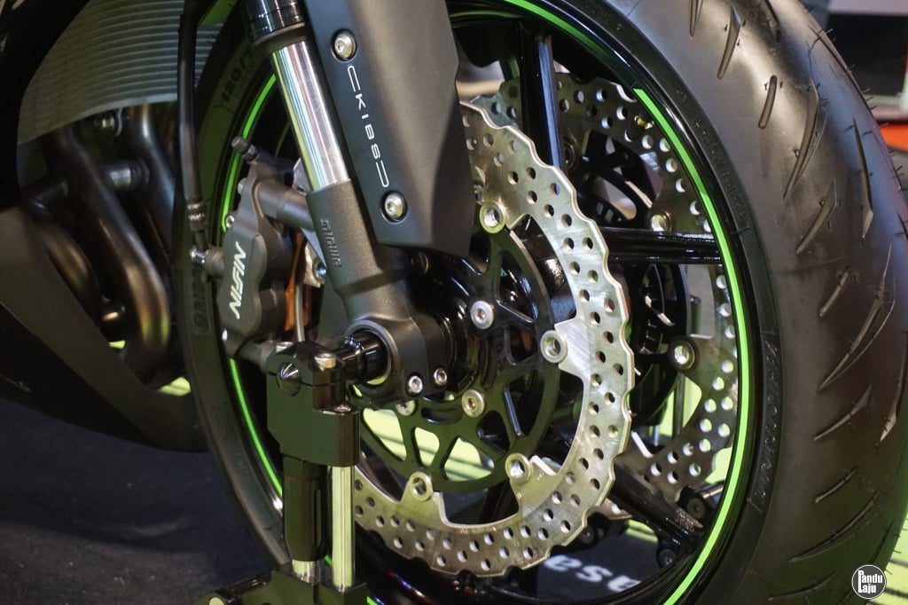- Kawalan Traksi Kawasaki (KTRC) dalam 3 mod menawarkan prestasi tunggangan sport terbaik dalam apa juga situasi dengan Sistem Brek Anti-Kunci (ABS) Pintar .