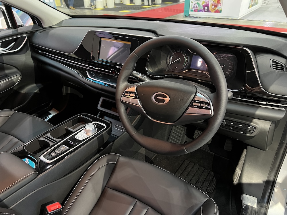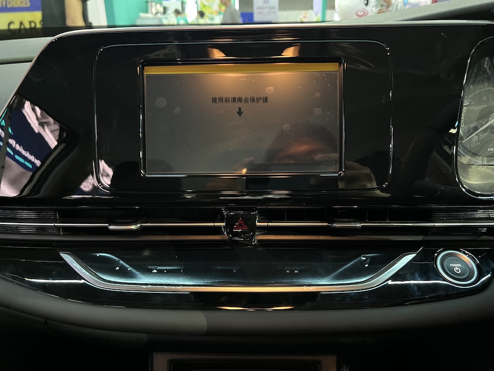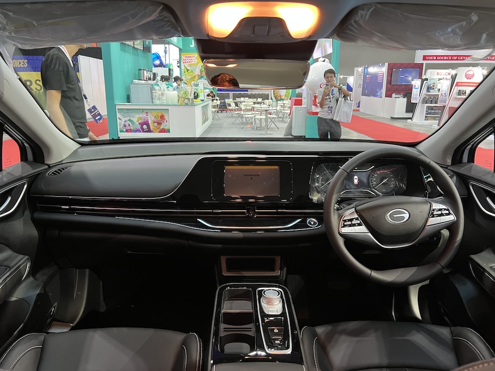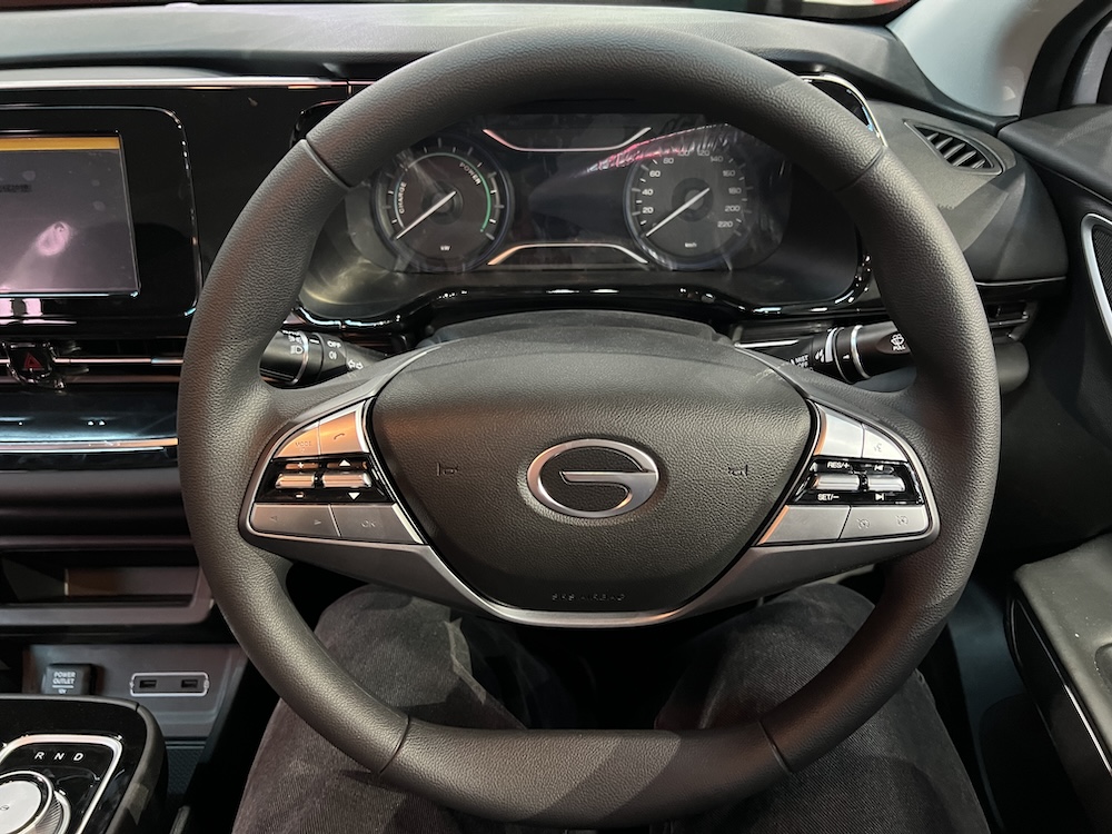 - Meter infotainmen 8 inci jenis sesentuh dengan sambungan Bluetooth, radio FM dan Apple CarPlay. Sistem audio pula datangnya dari AION sendiri.