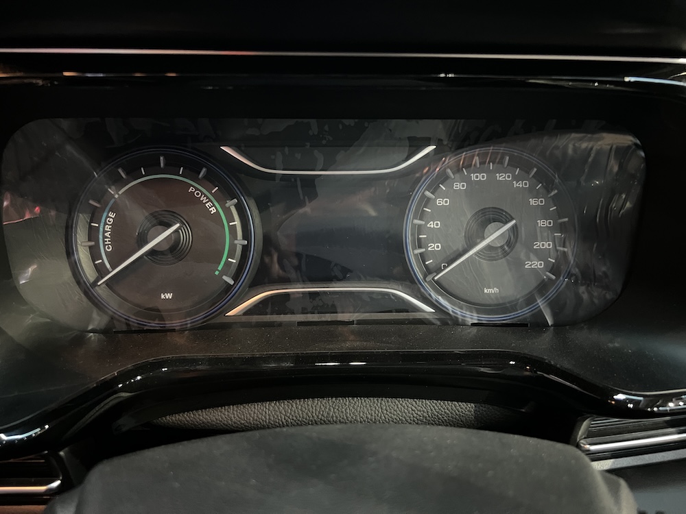 - Instrumen meter LCD 3.5 inci dengan dua meter analog, masing-masing untuk spidometer dan meter petunjuk pengecasan bateri.
