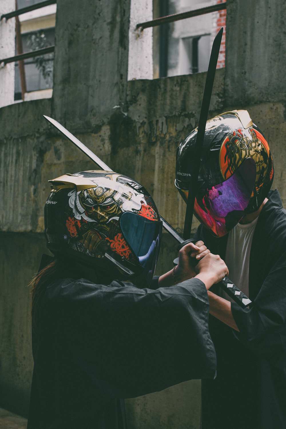 Ada enam pilihan helmet ditawarkan dan setiap satu menampilkan grafik menarik, iaitu: Kurita, Tsuru, Japop, Tengu, Oda dan Karasu.