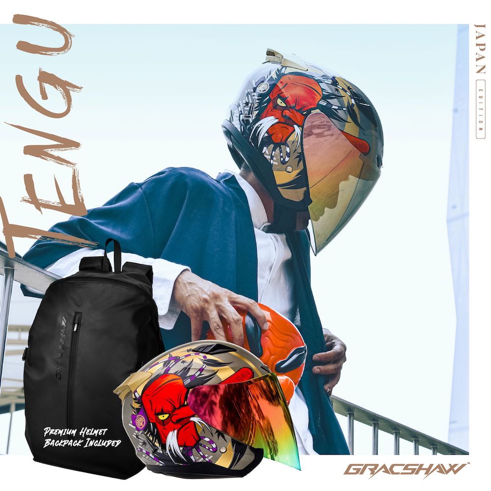Helmet Gracshaw Edisi Jepun (2023) pernah ditayangkan di acara Terengganu Bike Week 2023, Terengganu baru-baru ini. Produk itu ialah helmet jenis muka terbuka (open face) daripada model Gracshaw Gennex dengan ciri dwi-visor.