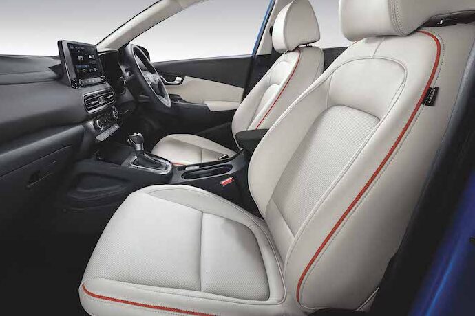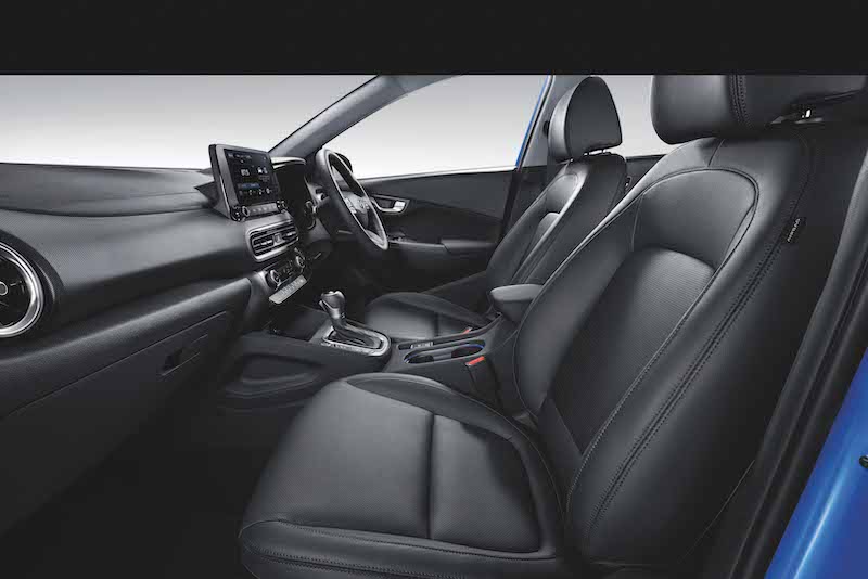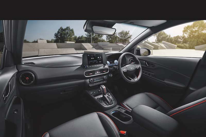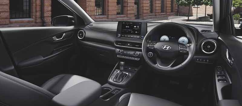 - Kabin Kona 1.6 N Line disertakan pakej N Line, iaitu upholsteri kulit hitam dengan material sued dan fungsi ventilator kerusi pemandu dan penumpang depan.