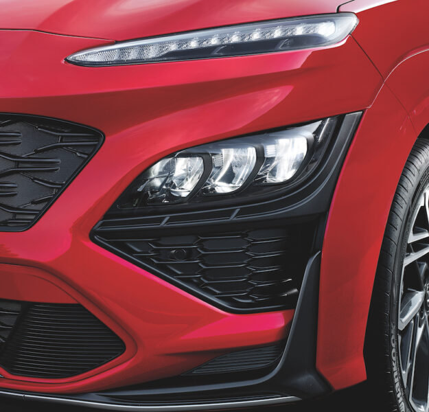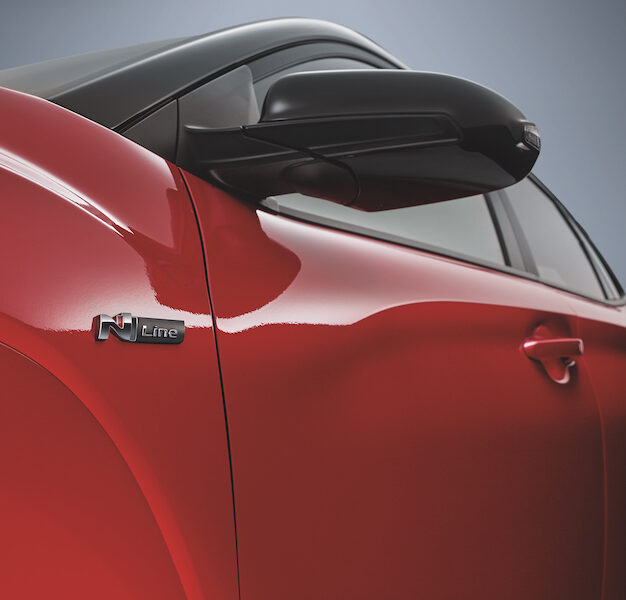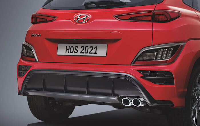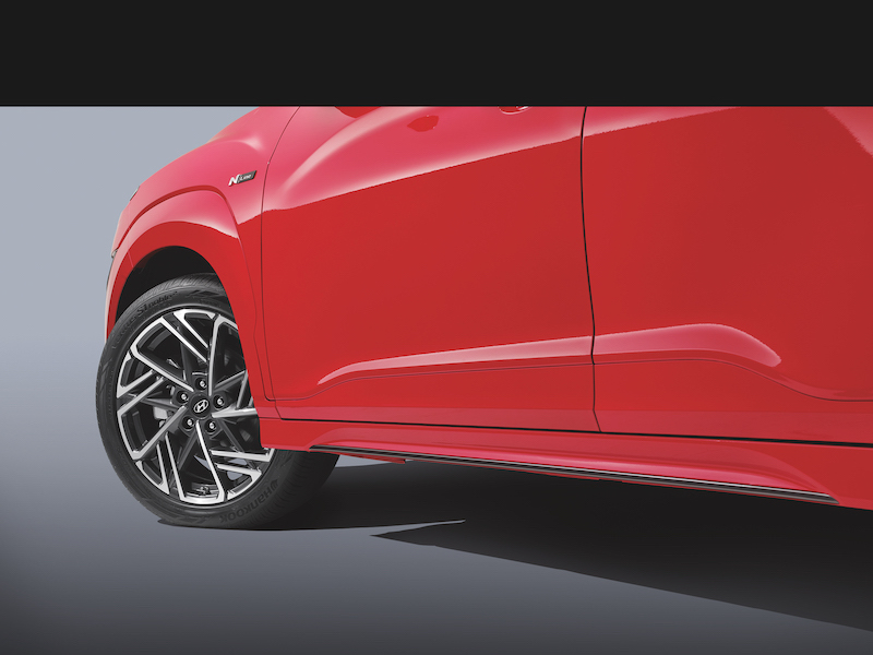 - Kona N Line pula lebih elegan. Bampar depan dicat sama warna seperti warna badan, termasuk bahagian gerbang roda.