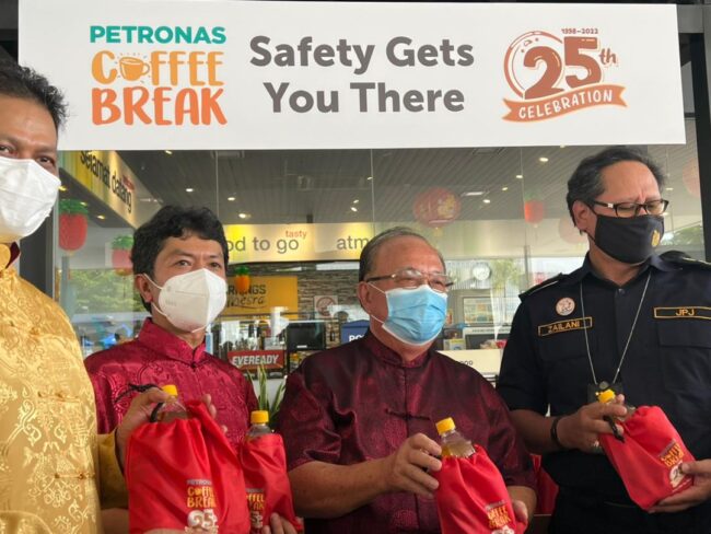 PETRONAS Dagangan Berhad (PDB) semalam menyambut ulang tahun ke-25 kempen ‘PETRONAS Coffee Break’ dengan menawarkan kopi, snek, pemeriksaan kesihatan, pemeriksaan kenderaan dan pelbagai baucar diskaun secara percuma kepada pemandu sempena Tahun Baru Cina.