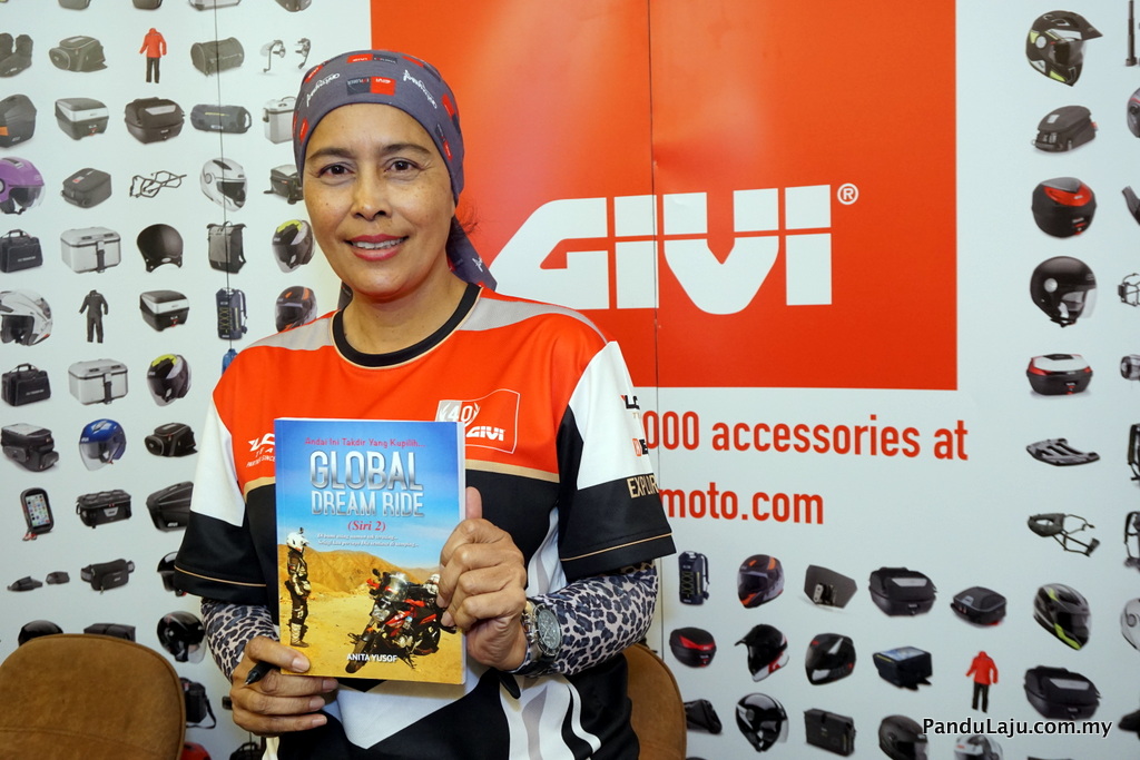 Pada masa sama, penunggang wanita pertama berjaya keliling dunia itu, yang juga Duta GIVI, Anita Yusof turut melancarkan buku Global Dream Ride Siri Ke-2, ‘Andai Ini Takdir Yang Kupilih’.