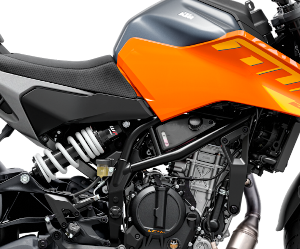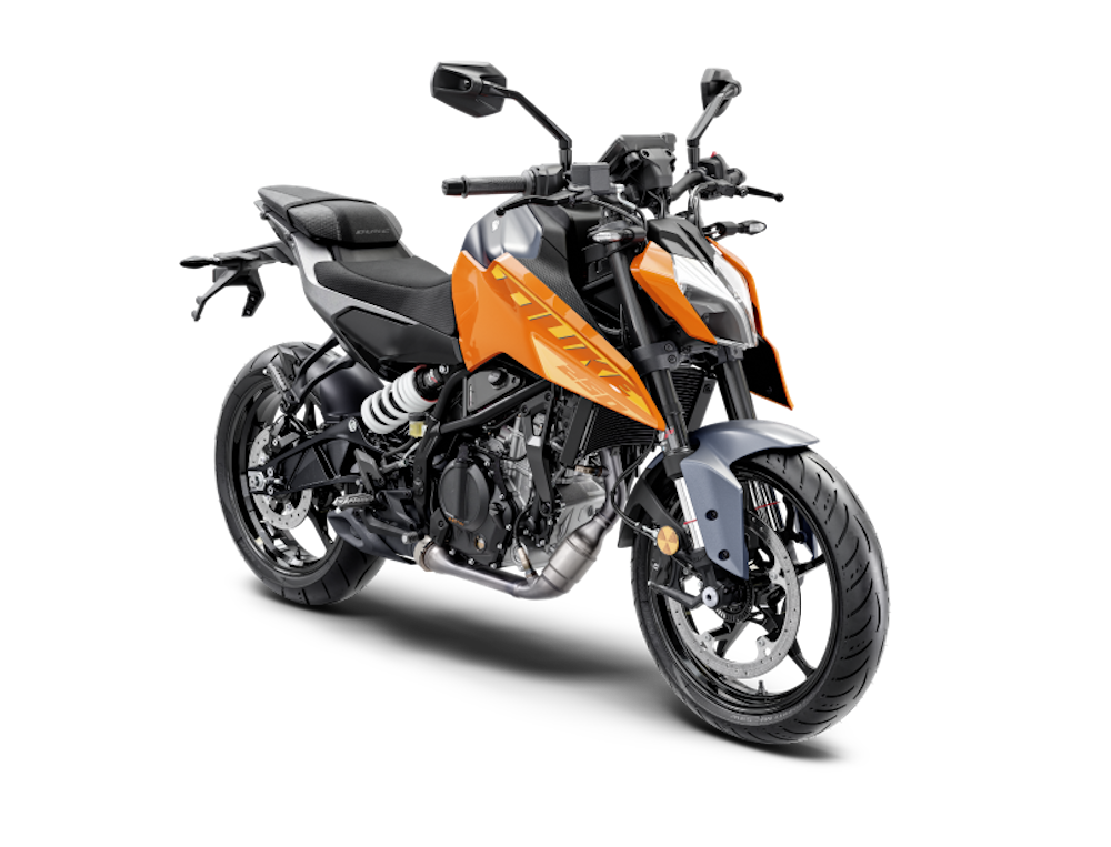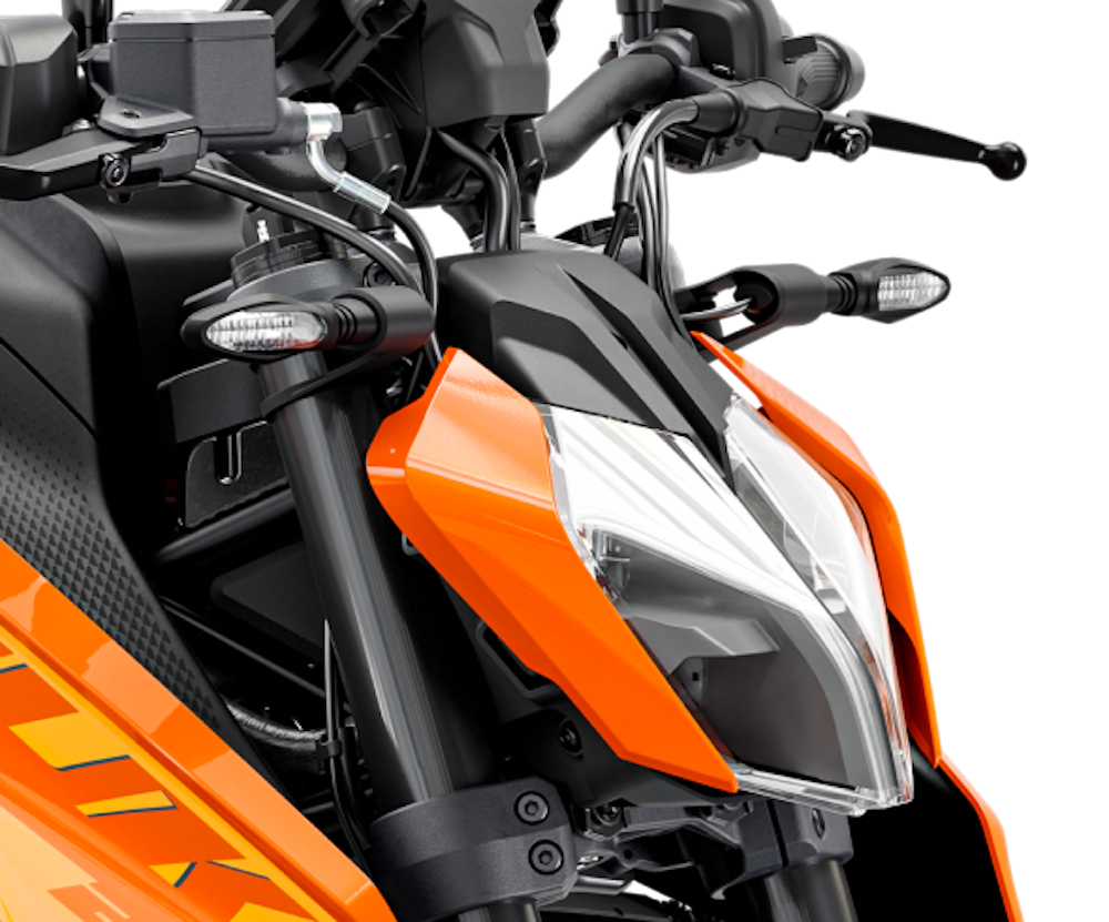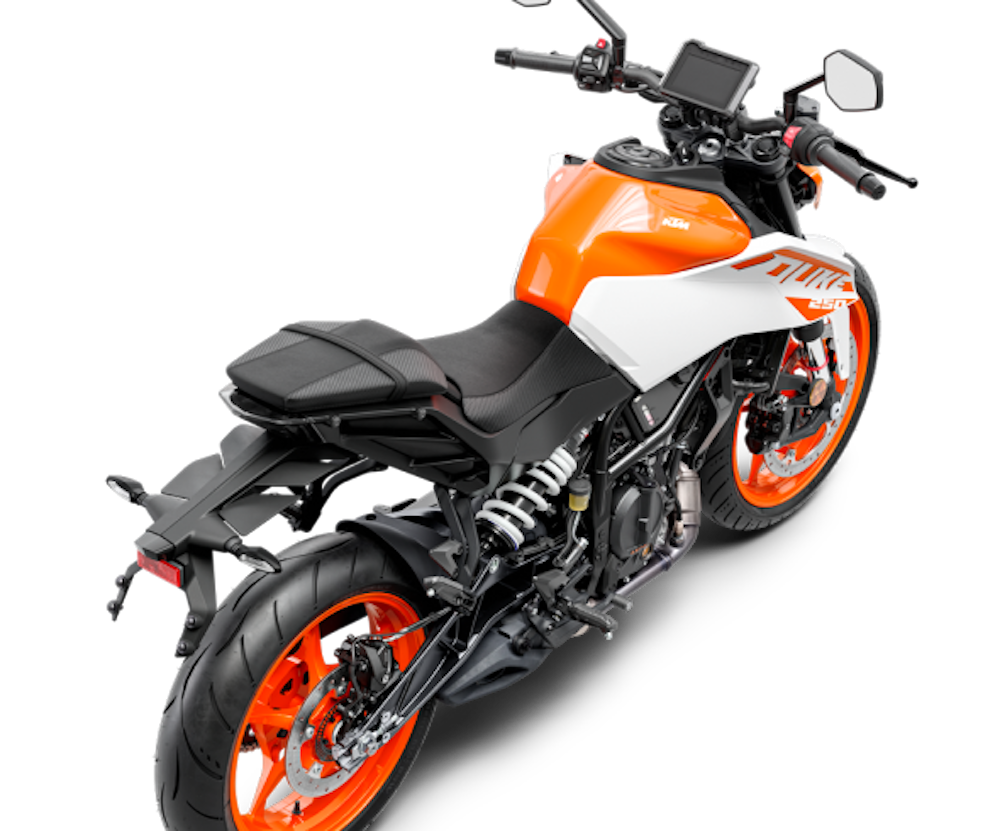 Ada dua warna pilihan ditawarkan: Electronic Orange (jingga) dan Ceramic White (putih). Tempahan boleh dibuat dengan deposit serendah 4,499 rupee (RM250). Berikut pembaharuan KTM 250 Duke (2024):