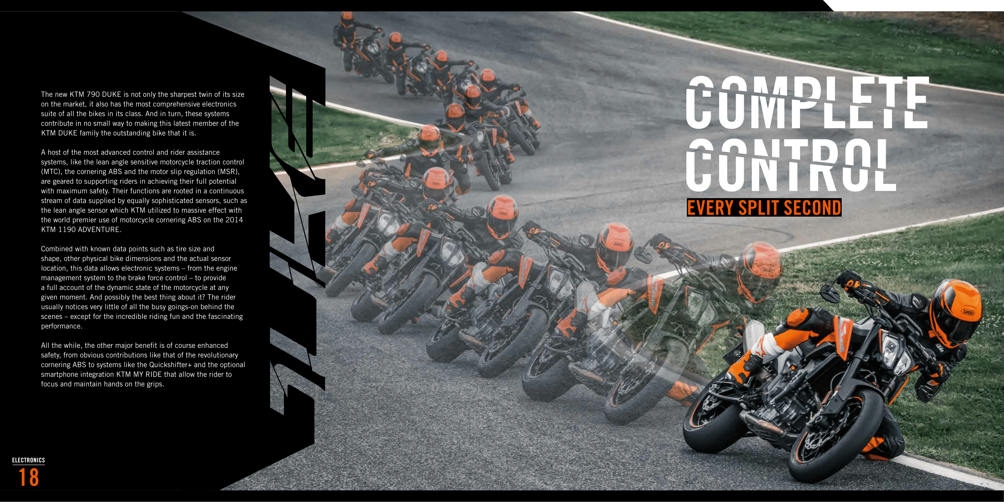 - Kawalan elektronik penuh, terdiri daripada TC yang mengesan sudut miring, Belokan ABS, Regulasi Gelincir Motor (MSR), Kawalan Wheelie dan Kawalan Luncur.
