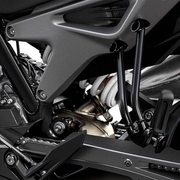 - Sistem suspensi menggunakan fork terbalik (USD) 43mm Apex di depan dan monoshock (belakang), manakala tinggi pelana 820mm.