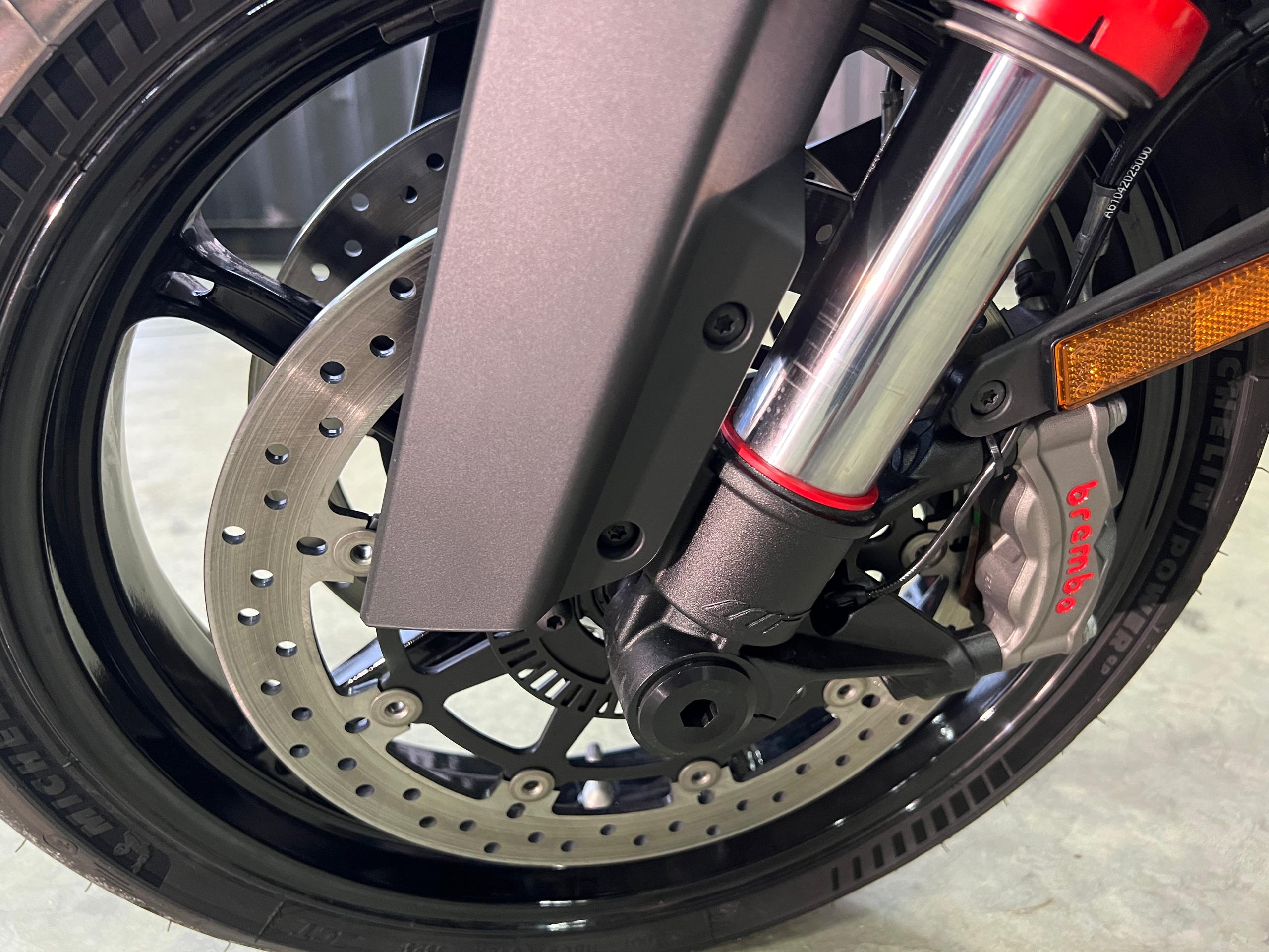 - Dipasang sistem brek cakera kembar 320mm dengan kaliper brek radial Brembo Stylema Monobloc 4-piston di depan, dan brek cakera tunggal Brembo 240mm dengan kaliper 2-piston di belakang berserta Sistem Brek Anti-Kunci (ABS) 2-saluran.
