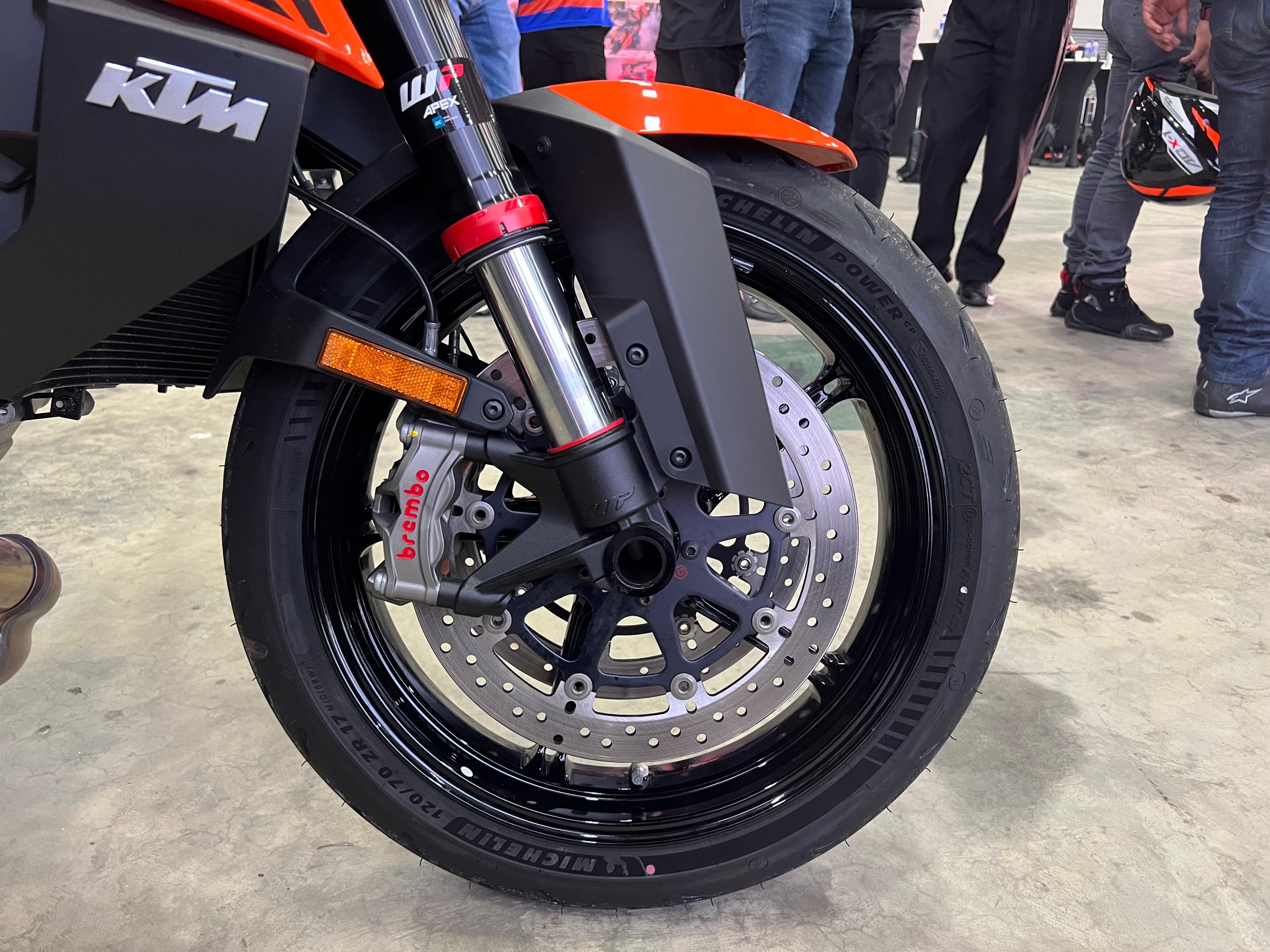 - Sistem suspensi fork terbalik (USD) WP APEX 43mm jenis boleh laras mampatan dan lantunan (depan), dan monoshock WP APEX jenis boleh laras prabeban dan lantunan (belakang).