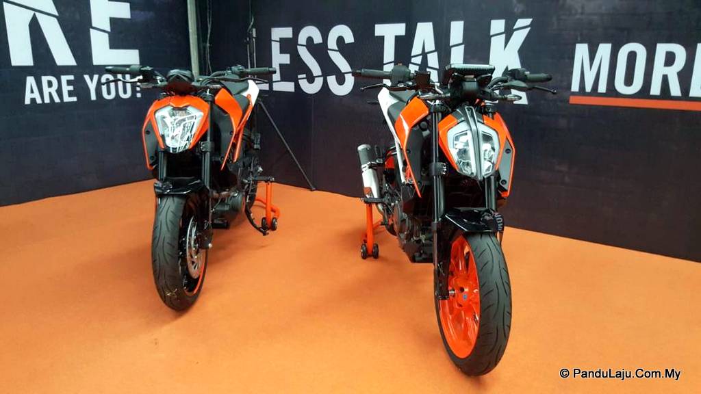SELEPAS hampir 7 bulan menunggu sejak diumumkan di India awal tahun ini, kini peminat streetbike KTM boleh menarik nafas lega apabila versi terkini KTM 250 Duke & 390 Duke (2017) secara rasmi dilancarkan pengedar KTM CKD Malaysia, Eurotech Wheel Distribution Sdn Bhd di One City Mall, USJ, sebentar tadi.