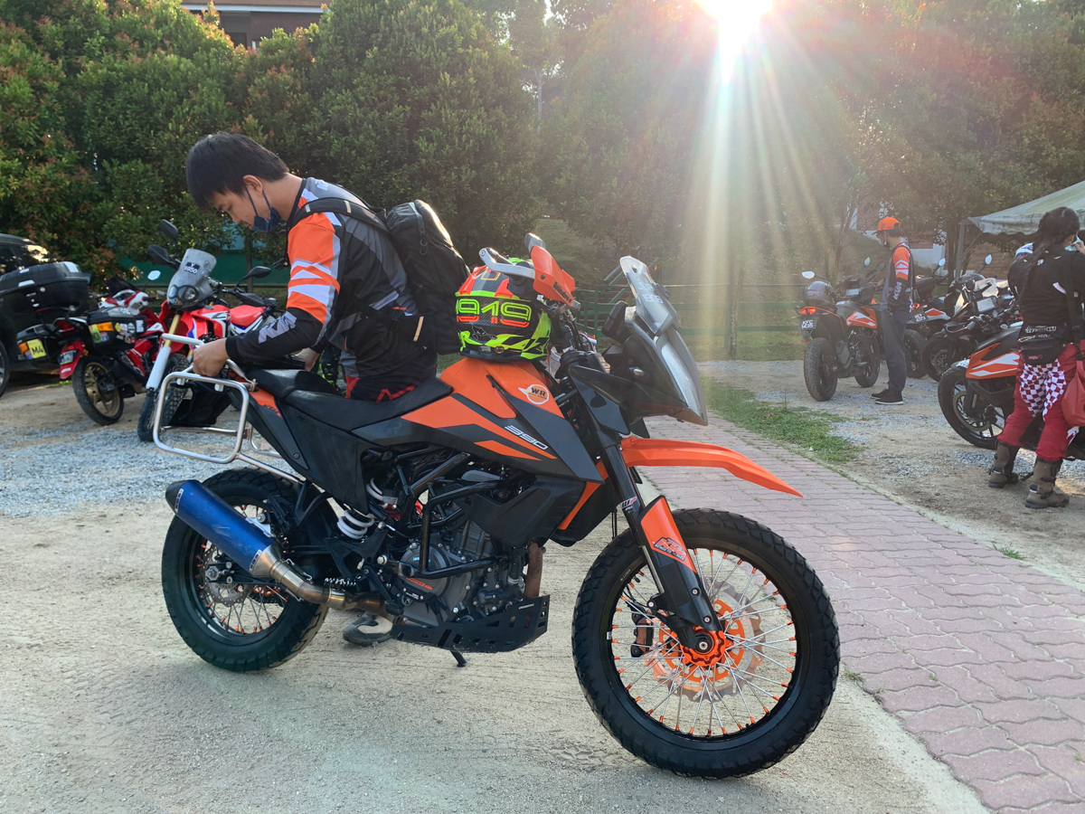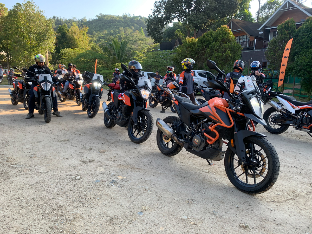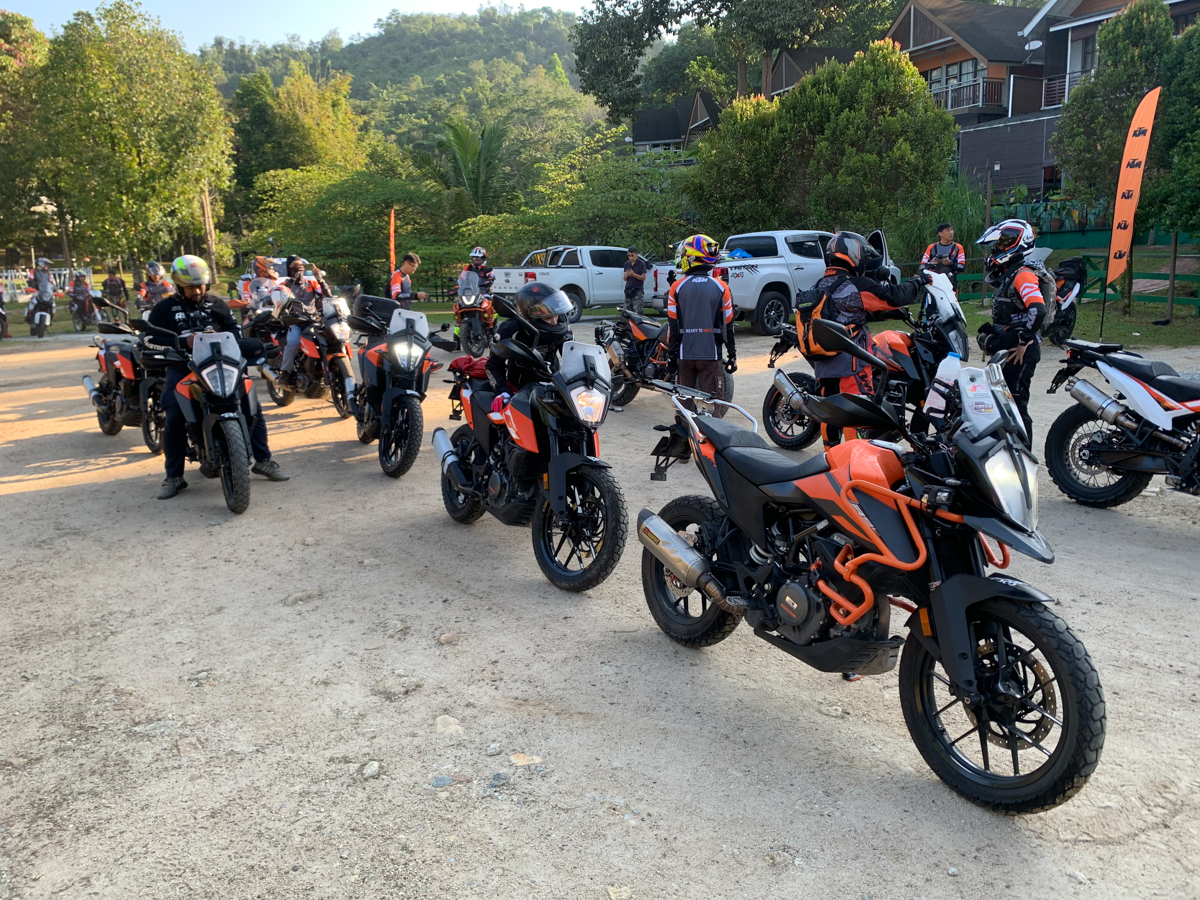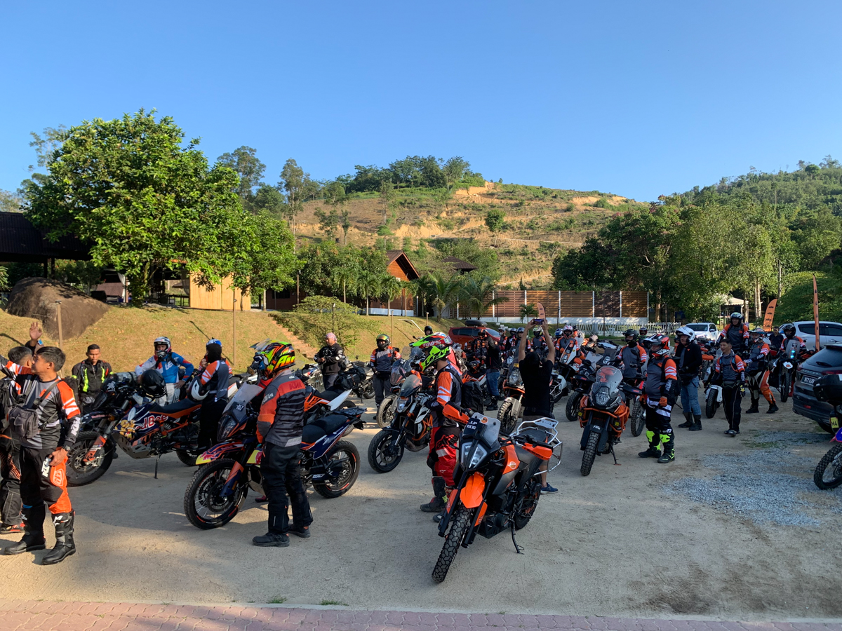 Semua peserta berkumpul di resort Huda’s Haven di Hulu Rening pada Jumaat. Disebabkan ini acara advencer dan bukan off-road semata-mata, ada sebuah jentera enduro yang hadir berbanding jentera KTM lain seperti 250 Adventure dan 390 Adventure yang baru saja dilancarkan, 790 Adventure dan 790 Adventure R, 1050 Adventure, 1190 Adventure, serta 1290 Super Adventure S. Ada juga beberapa model advencer daripada jenama selain KTM.