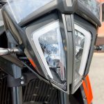 - KTM 790 Adventure dipadankan lampu depan LED terpisah bersama visor pengadang angin yang boleh dilaraskan ketinggian.