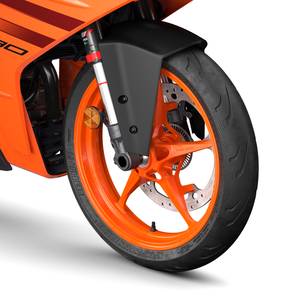 - Sistem suspensi fork terbalik (USD) 43mm WP Apex di depan dan monoshock di belakang, yang kedua-dua jenis boleh laras.